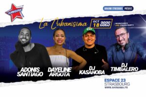 L’Association AHI NA’ MA’ Strasbourg est heureuse de vous inviter à une journée cubaine spéciale . Pour cette 20ème année anniversaire nous avons le plaisir et la chance de recevoir le danseur Adonis Santiago , la nouvelle sensation de la scène cubaine internationale, pour la 1ère fois dans la région ainsi que la danseuse Dayeline Argota Alvarez, référence du milieu de la danse afro cubaine.